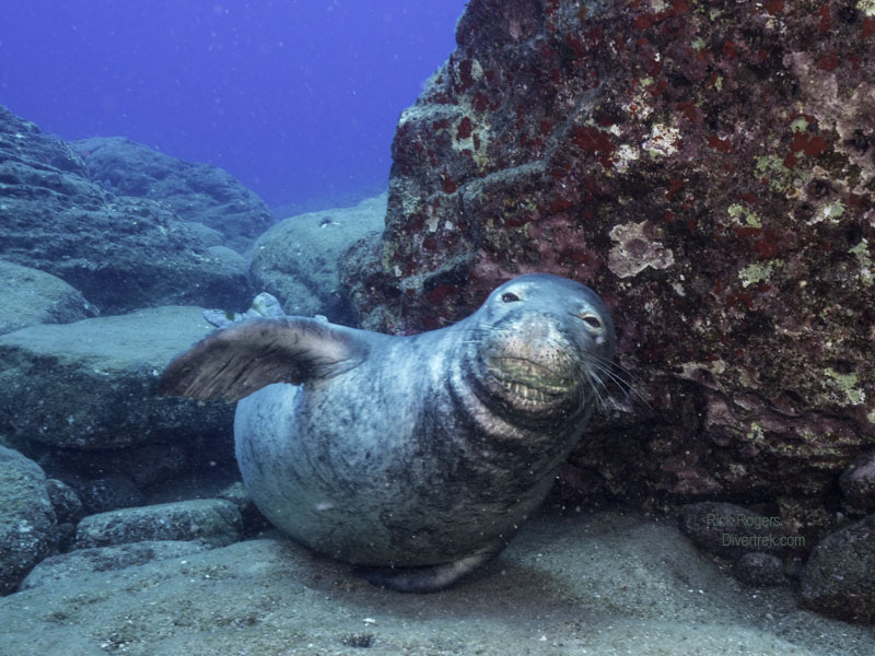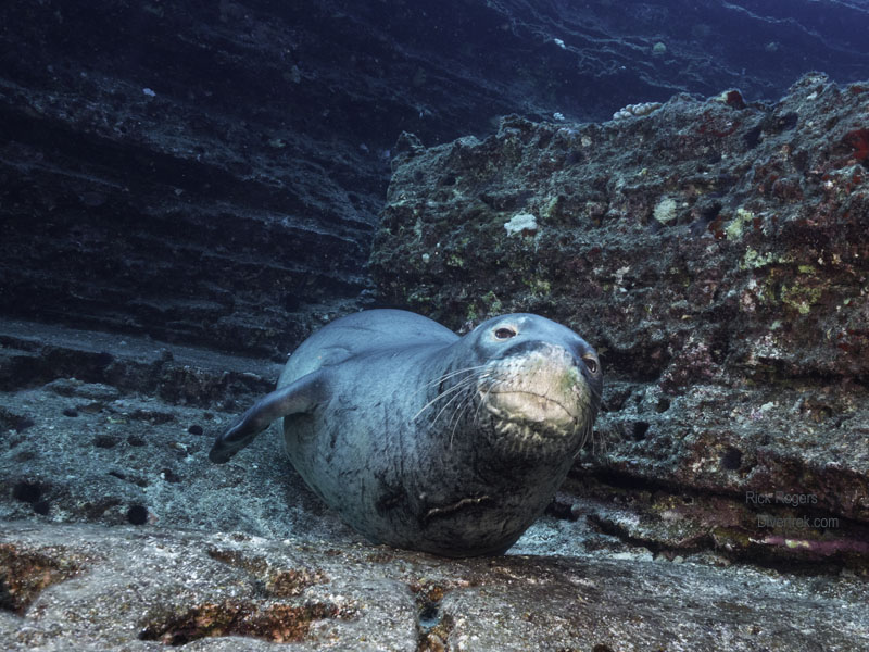 What is the allure of the diving there? Lehua island is a truly remote and wild location which can only be dived from May-September owing to the water conditions. The main attraction is diving with the endangered Hawaiian Monk seal, but you can also expect lots of visits from several types of sharks as well. But even if there were no Monk seals- or any fish- I would still dive it. The underwater topography that you will see there-particularly at Arches dive site- would strain the imaginations of a science fiction writer! It literally made me feel like I was exploring a sunken, lost civilization. At the other two dive sites, moving northwards into deeper water, we saw more sharks and seals.