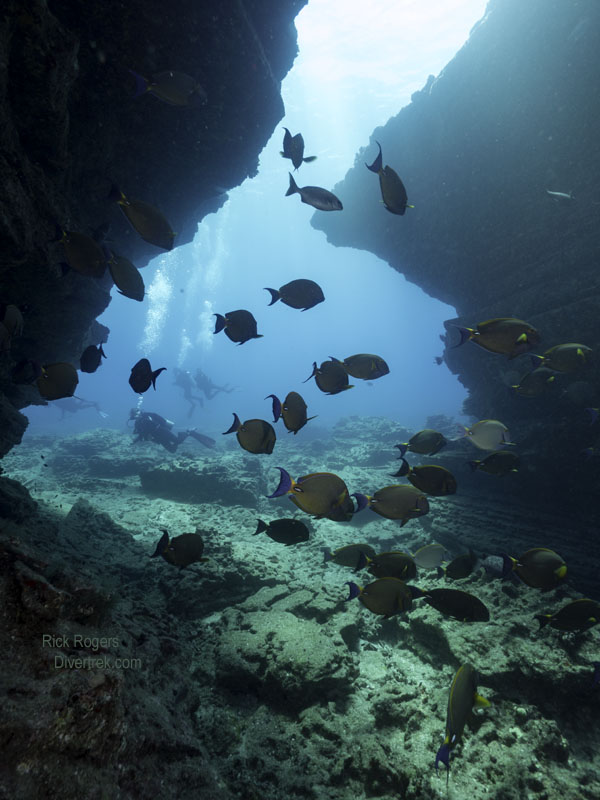 The second dive site was at the well known Sheraton Caverns (owing to it being situated in front of the Sheraton Resort), a must-do dive site. In fact, I dove this site three times, and still itched for more! Every dive was a little different, and to be honest, I never even made it through the whole dive without stopping to photograph something or watch turtles. The site is renowned for all the patch-work of tunnels, caverns, swim-throughs and passageways that are just fun to explore. You literally can’t wait to see what’s around the next corner. And another reason it is so popular is because the wildlife there is just so habituated to divers that they are “friendly”, and approachable. Unfortunately, the south shore tends to get Kona Winds (25% of the year) and a southern swell during the summer months which tends to reduce visibility, especially at the shallower sites.